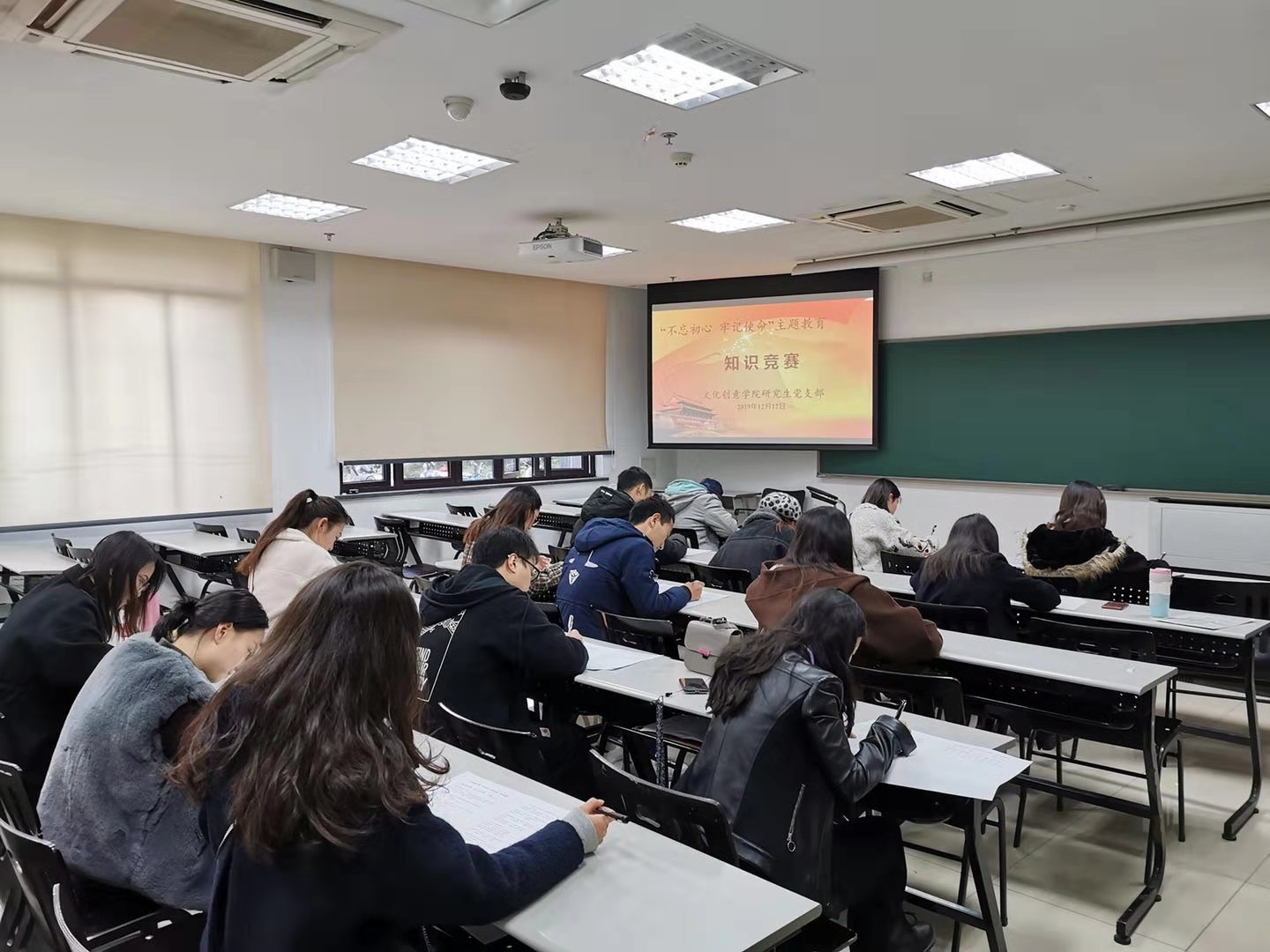 自9月开展“不忘初心、牢记使命”主题教育以来,91制片 研究生党支部全体成员,在91制片 党总支的指导下,在支委成员的带领下,深入学习贯彻习近平新时代中国特色社会主义思想,将学习教育、调查研究、检视问题、整改落实贯穿始终。针对“理论学习有收获”的目标,12月12日,研究生党支部在恕园9号楼102进行了“不忘初心、牢记使命”主题教育知识竞赛。