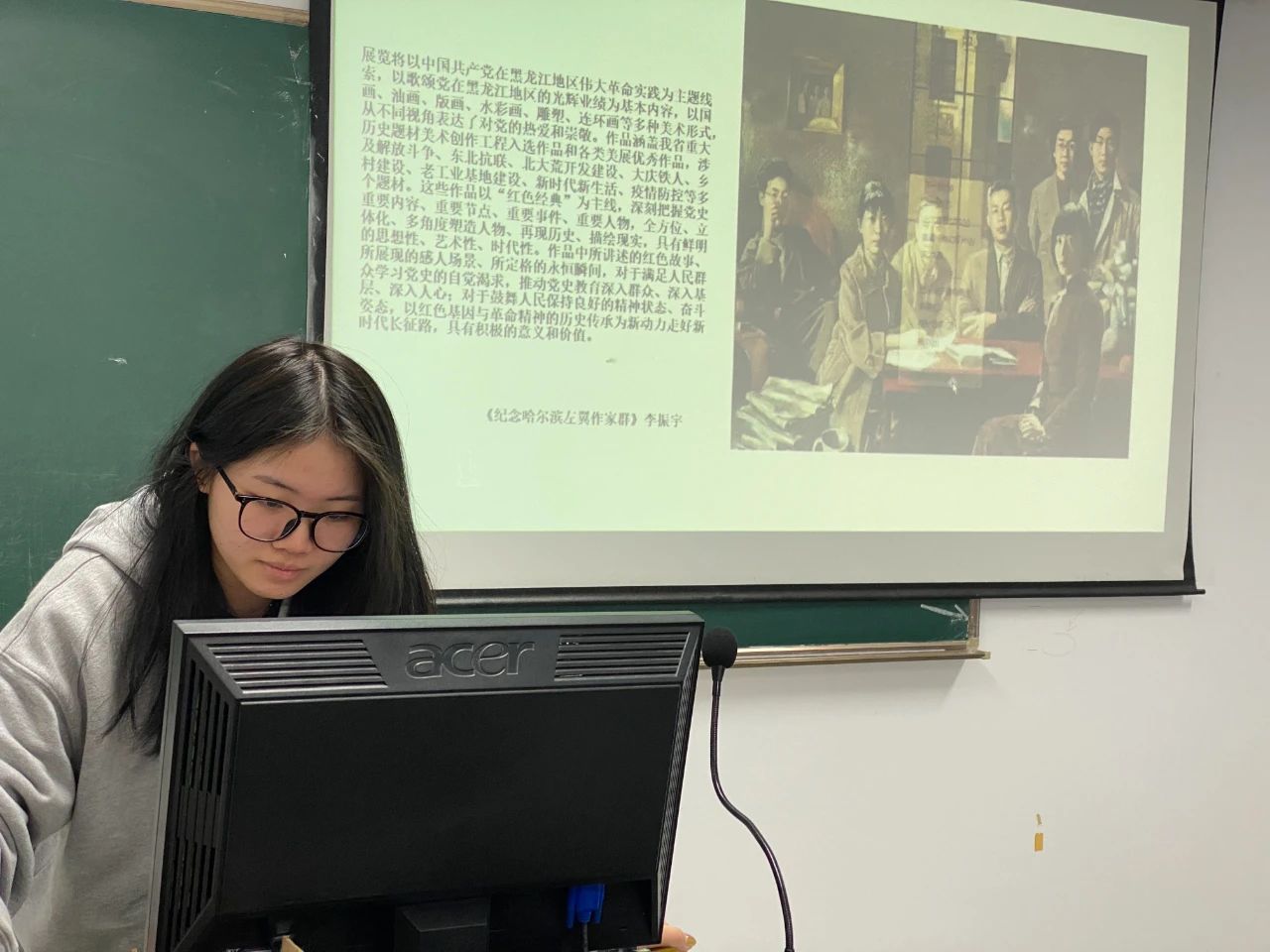 魏静珂同学深入浅出地介绍了画作的精妙之处,让人深深感受到革命前辈的坚毅品格。