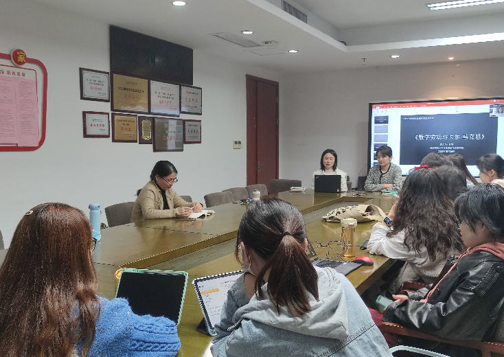 10月26日19点整,由文化产业管理系主办的蕙风·映雪读书会第五期在恕园1号楼402会议室联合腾讯会议同步展开。本次读书会聚焦的著作是克里斯蒂安·福克斯的《数字劳动与卡尔·马克思》,由付缦老师领读,别君华老师主持对谈,俞香云老师、杨帆老师、沈松华老师参与活动。