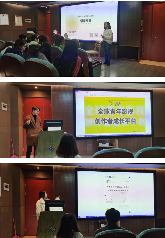 本次讲座赵鸣昊老师主要从AME核心团队搭建、所获投资和支持、当下电影行业现状、行业痛点以及AME影视计划的核心追求等方面讲述了AME影视计划将如何帮助同学们更好地创作,走出当下行业困境。