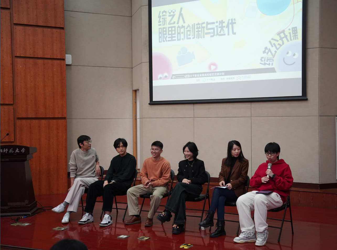 提问环节,同学们反响热烈,纷纷提出了自己对综艺的后期制作以及综艺节目如何做出令市场满意的创新的一些疑惑,各位老师都耐心地作出了详细的解答,同学们收获颇丰,此次活动圆满落幕。