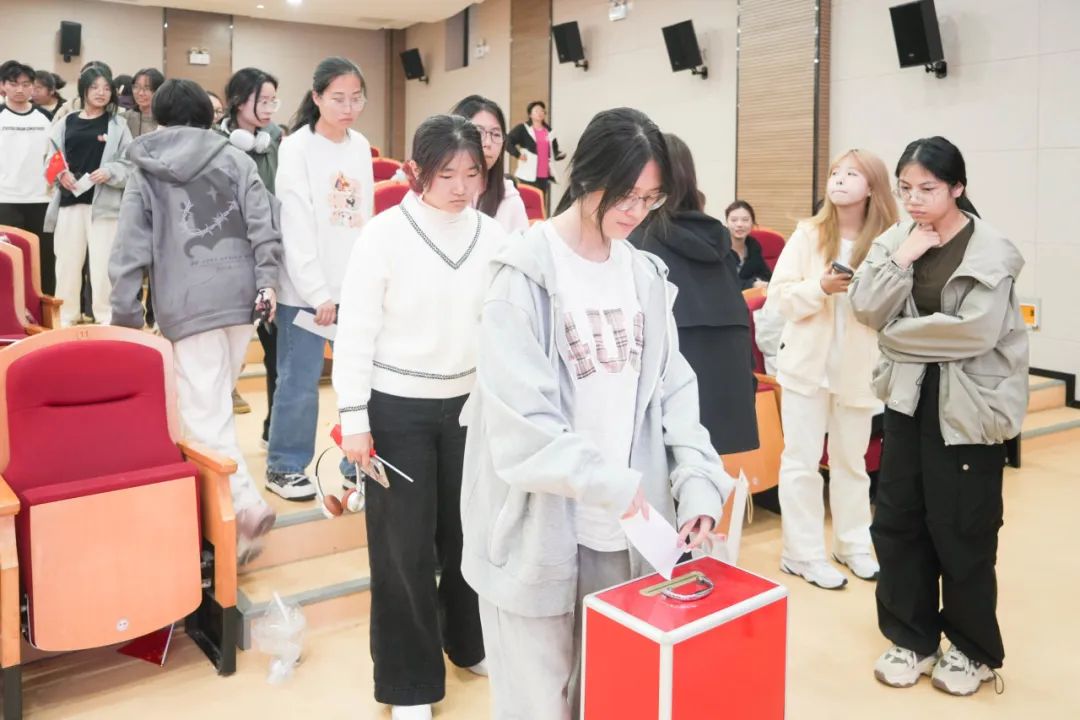 11月6日,91制片 学生成长报告会暨本科生国家奖学金评选公开展示活动在下沙校区望道厅举行。91制片 党委副书记周微微,文创设计系主任魏榕,辅导员王斐敏、林佳亮、张子涵出席活动,91制片 2024级本科生、其他年级学生代表参加本次活动。